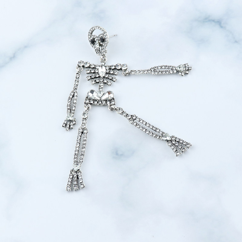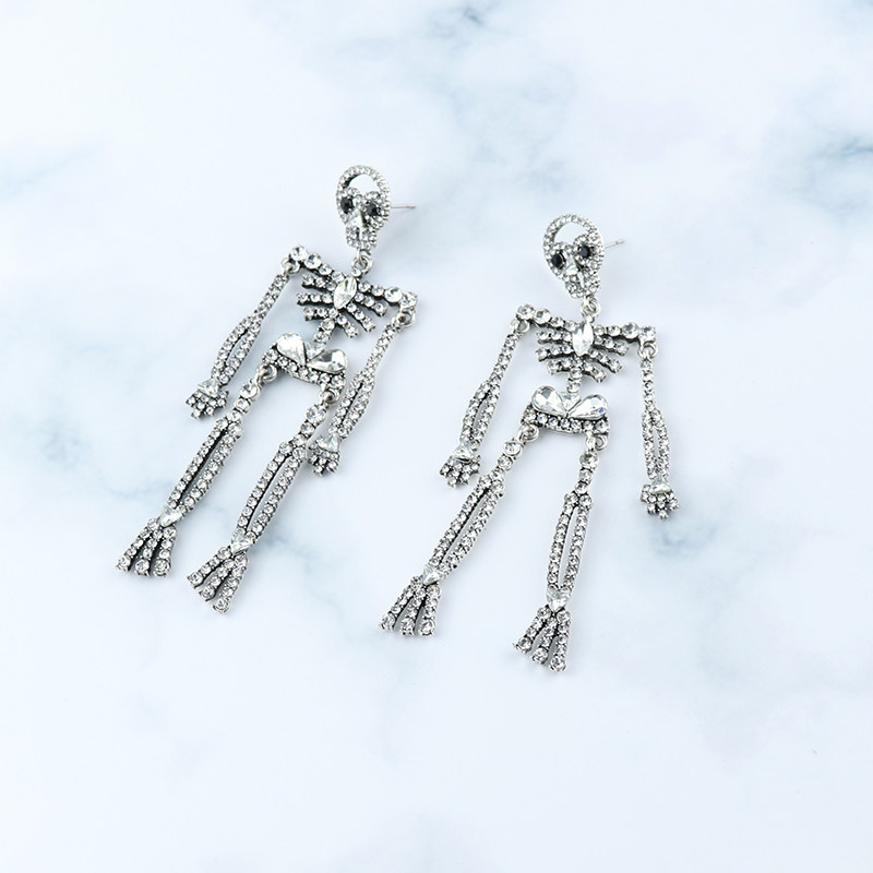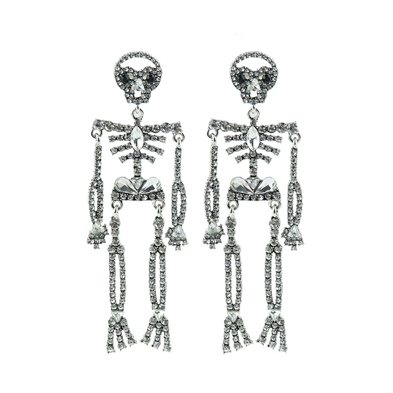 European And American Exaggerated Big-Name Niche Temperament Earrings Full Of Diamonds Luxury Halloween Skeleton Personality Ear Nightclub Trendy Women'S Earrings