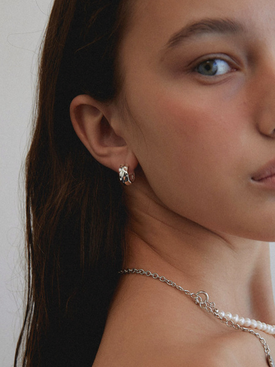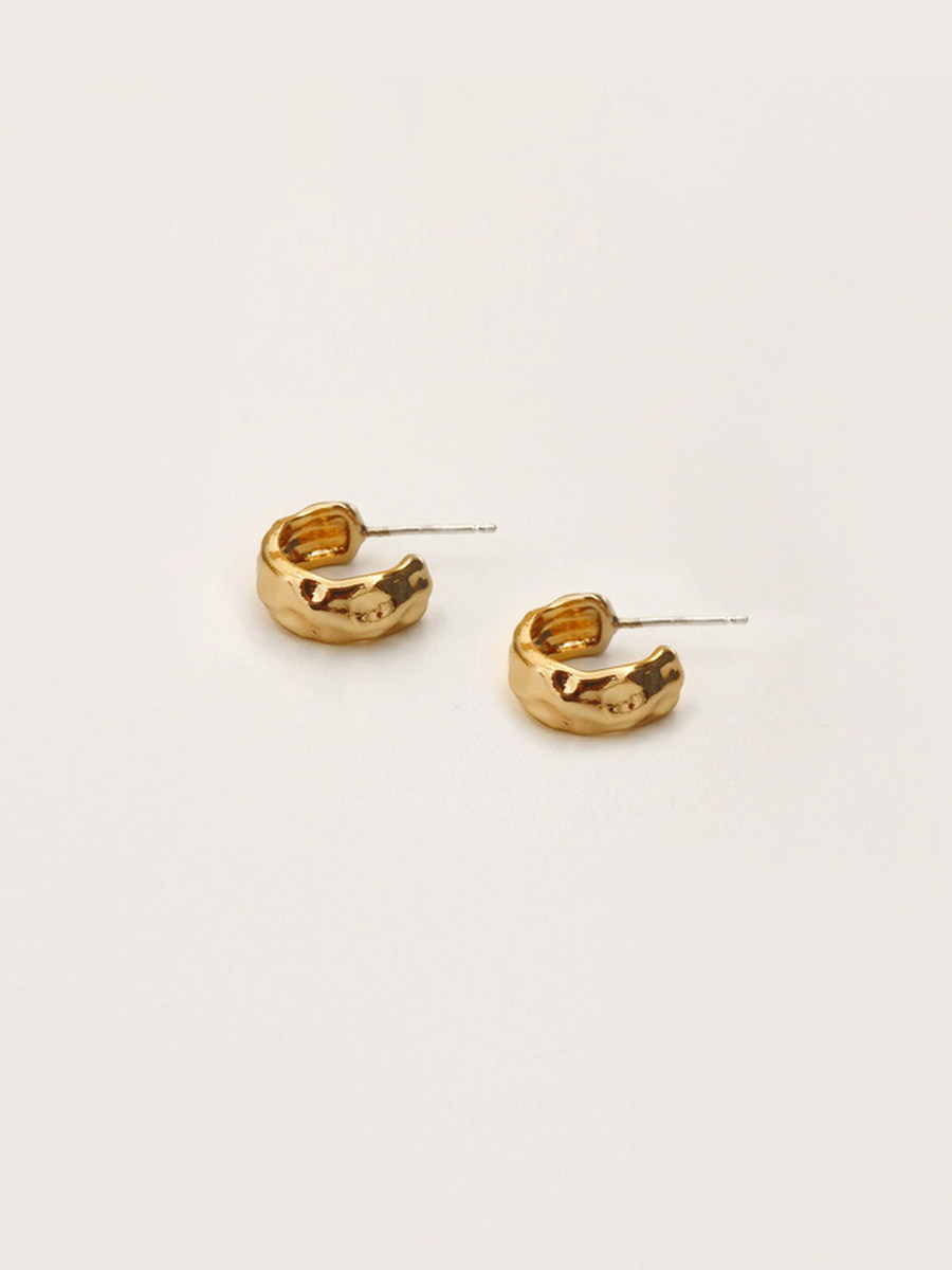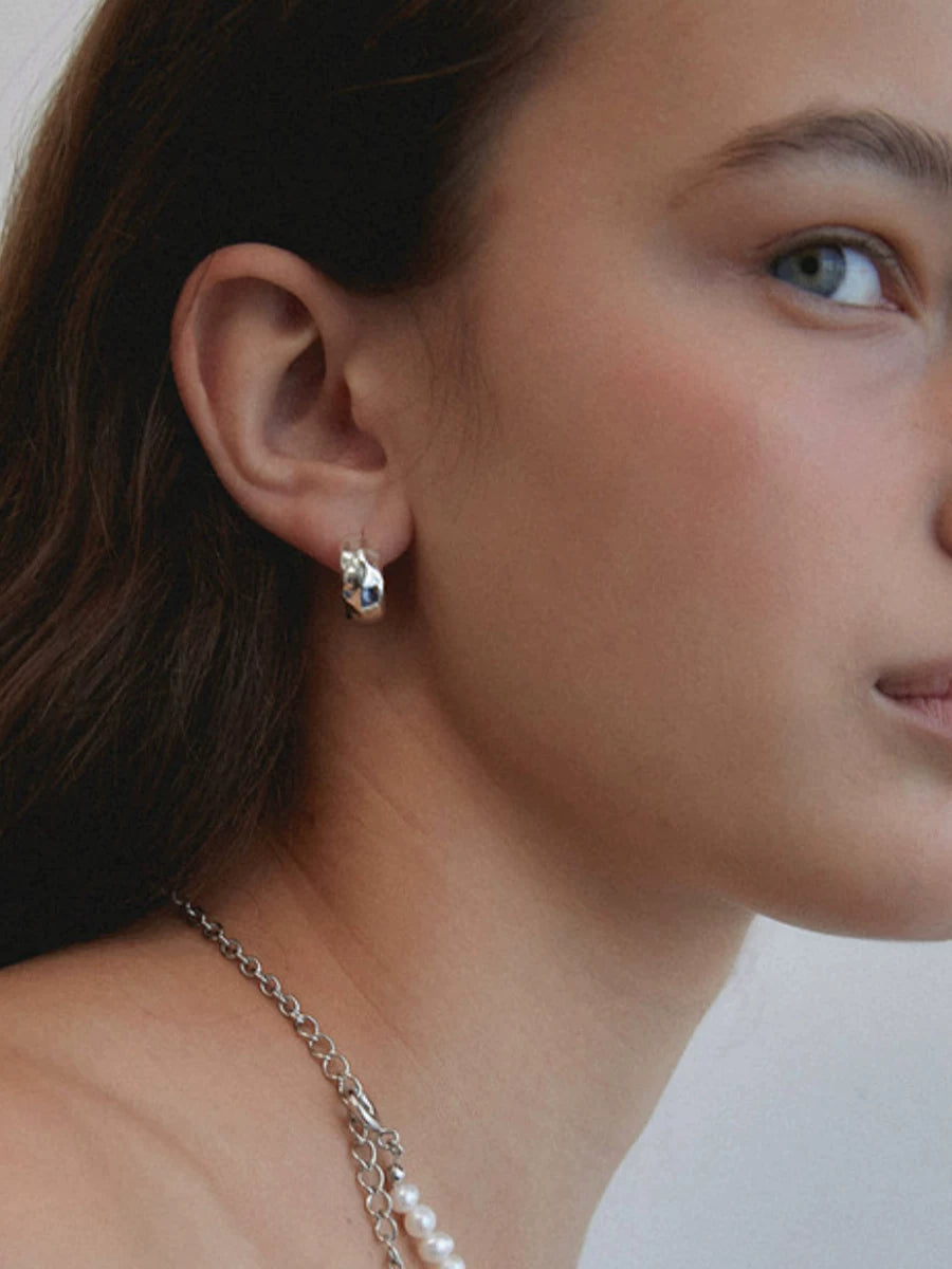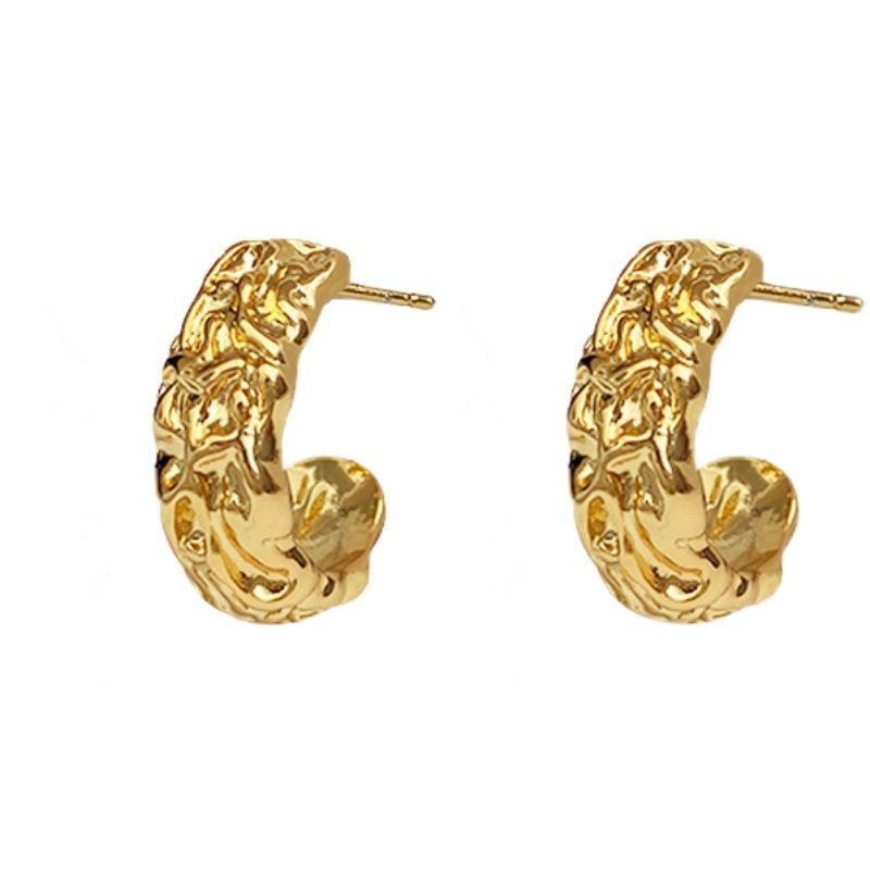 Niche Designer French Lazy European And American Retro Metal Carved Lava Pleat Hypoallergenic Earrings S925 Silver Needle