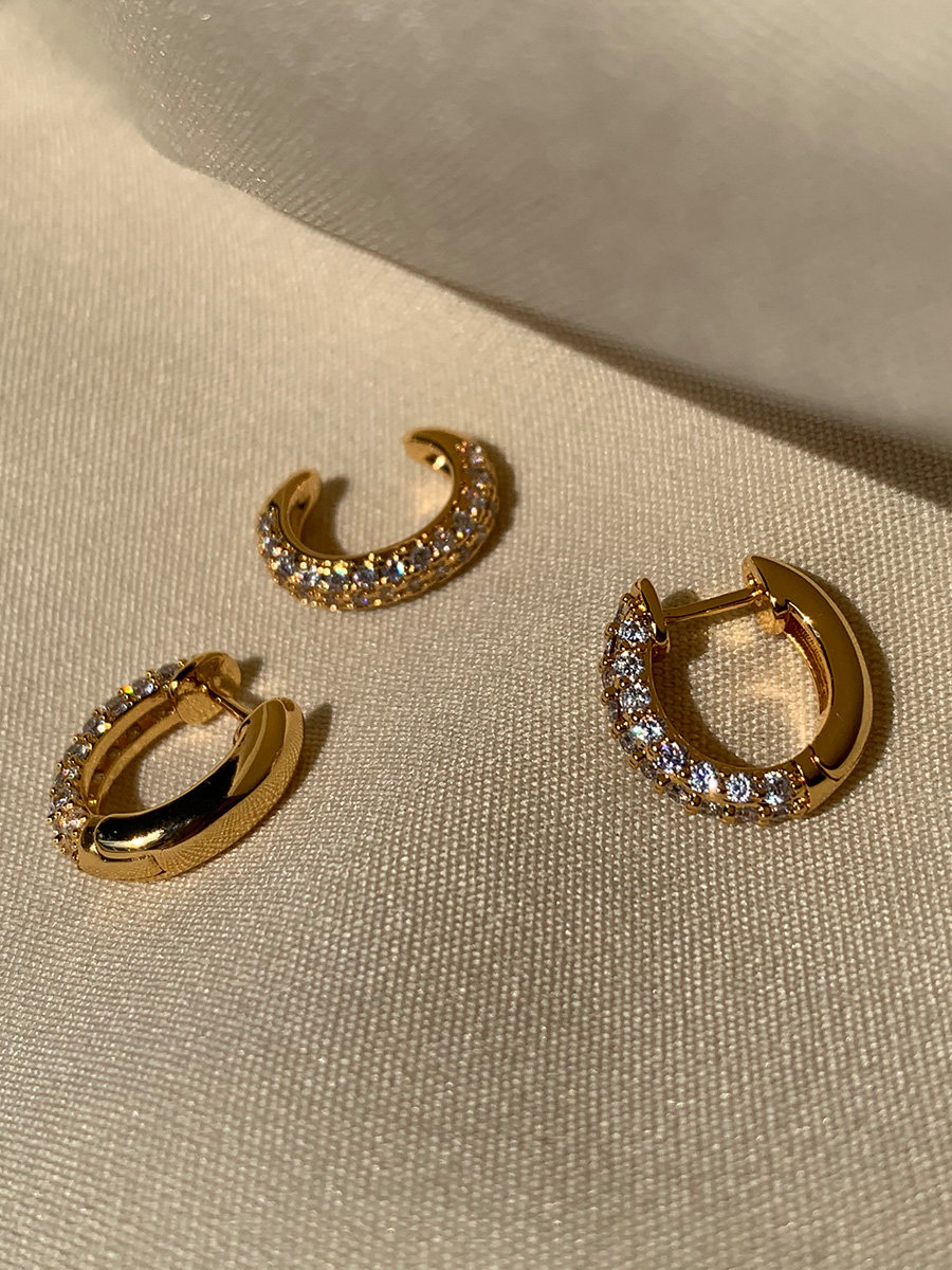 Jilifang Fashionable Stacked High-End Gold-Plated Glossy Combination Inlaid Rhinestone Hoop Earrings Ear Clip Earrings
