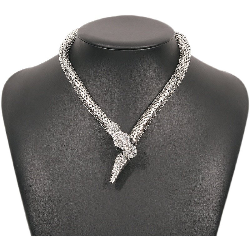European And American Exaggerated Original Design Personalized Snake-Shaped Diamond Necklace, Popular And Versatile Punk Style Hip-Hop Street Style Necklace