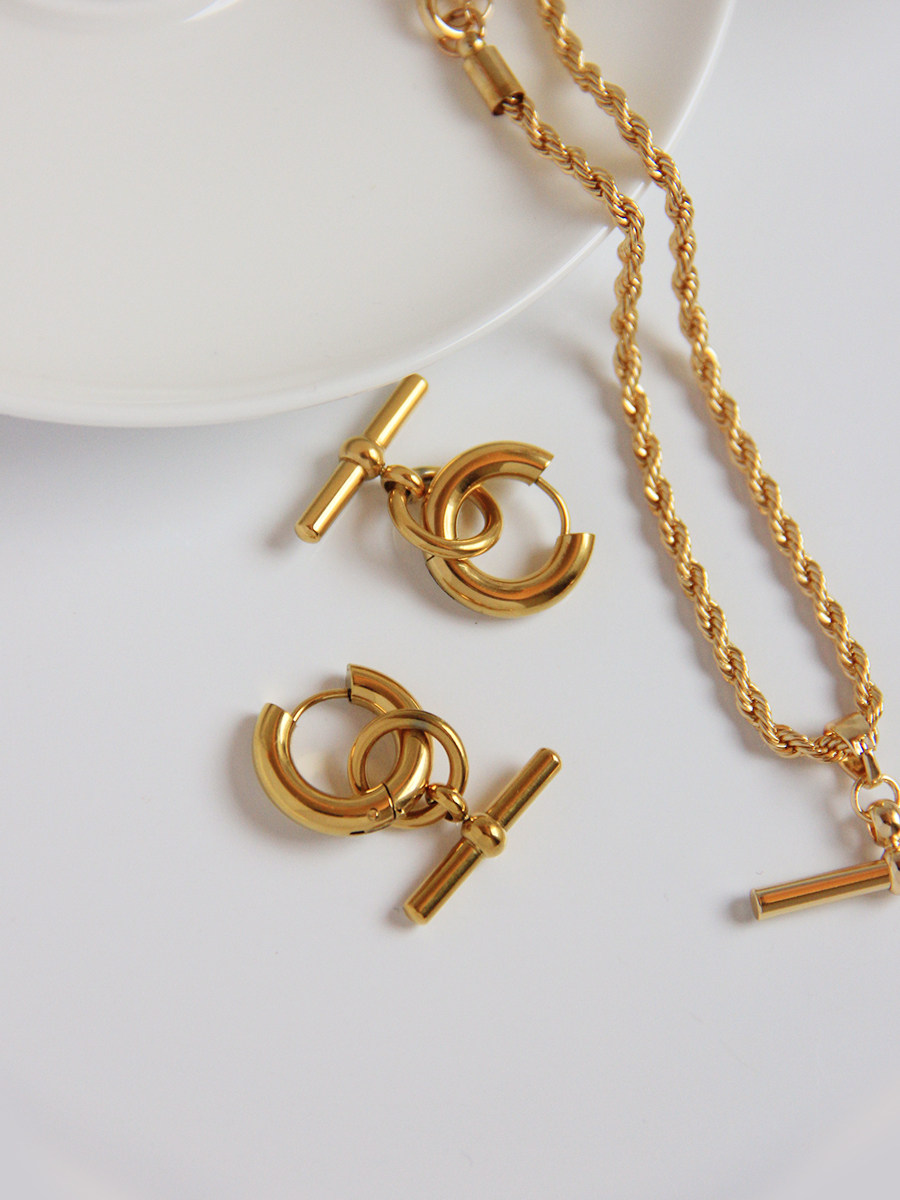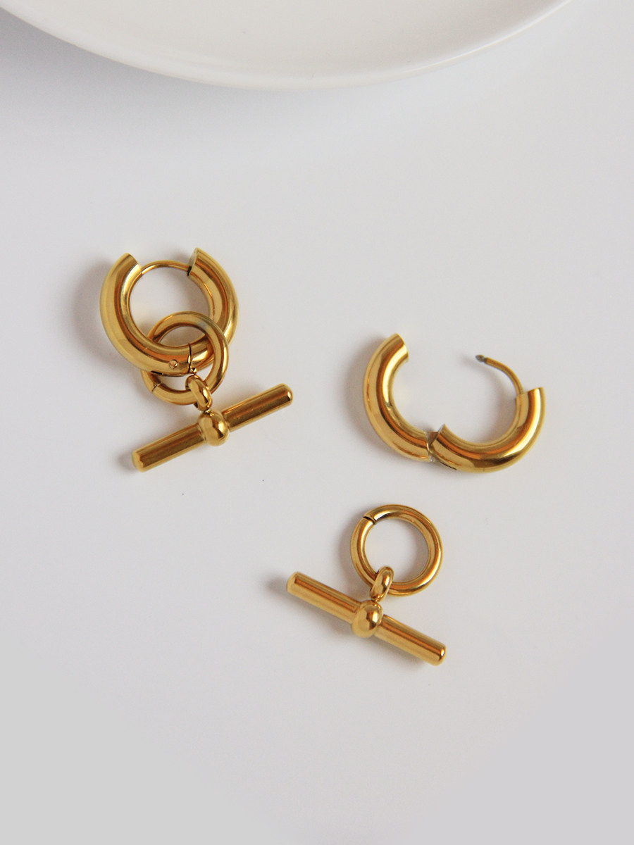 Australian Niche Trendy Brand European And American Ins Fashionable Geometric T-Stick Pendant Ring Detachable Titanium Steel Gold Earrings