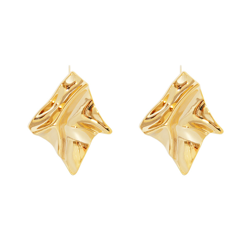 Niche Design, Fashionable European And American Minimalist Style, Personalized Geometric Rhombus Pleated Irregular Gold-Plated Silver Earrings And Ear Pins