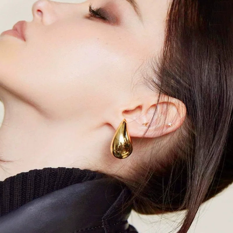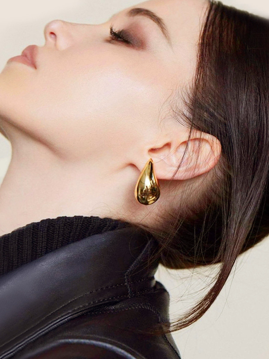 Jilifang Blogger Recommends Hollow Weight-Saving Design, High-End European And American Simple Gold-Plated Drop Shape Earrings