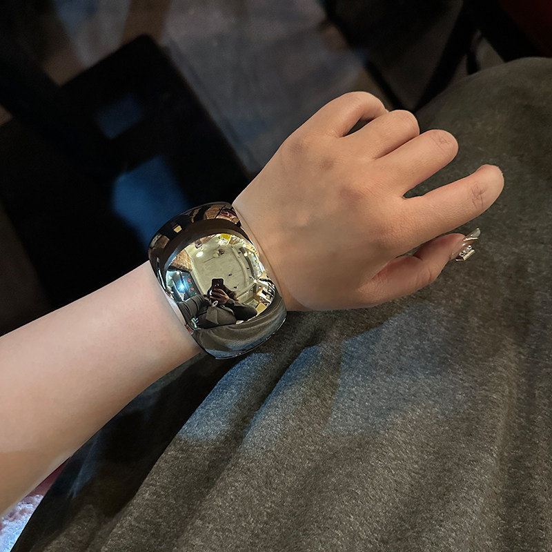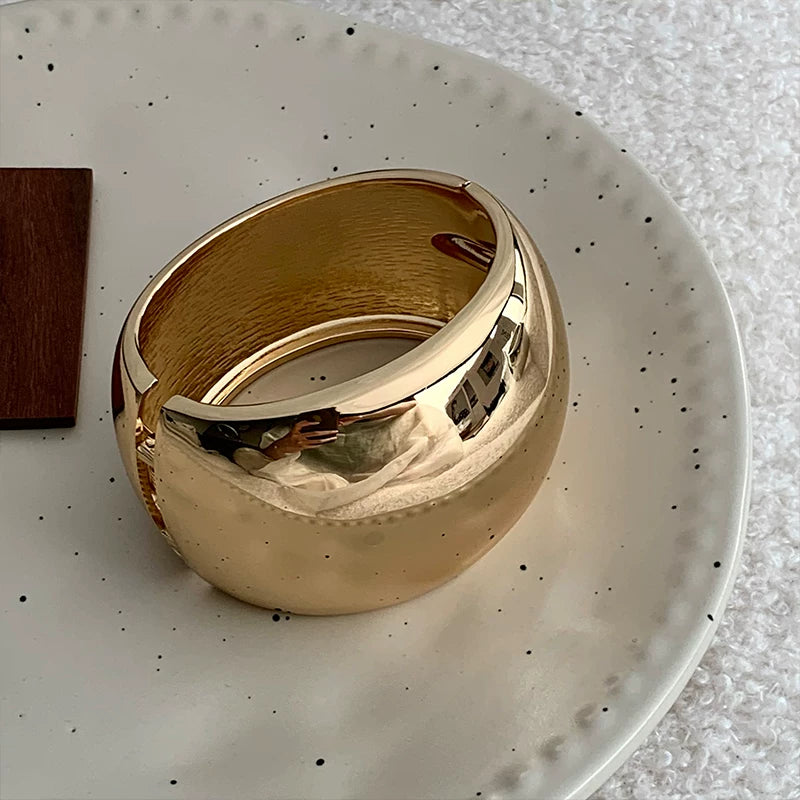 Niche High-End Wide Version Metal Curved Glossy Bracelet 2024 New High-End Light Luxury Open Bracelet Trend