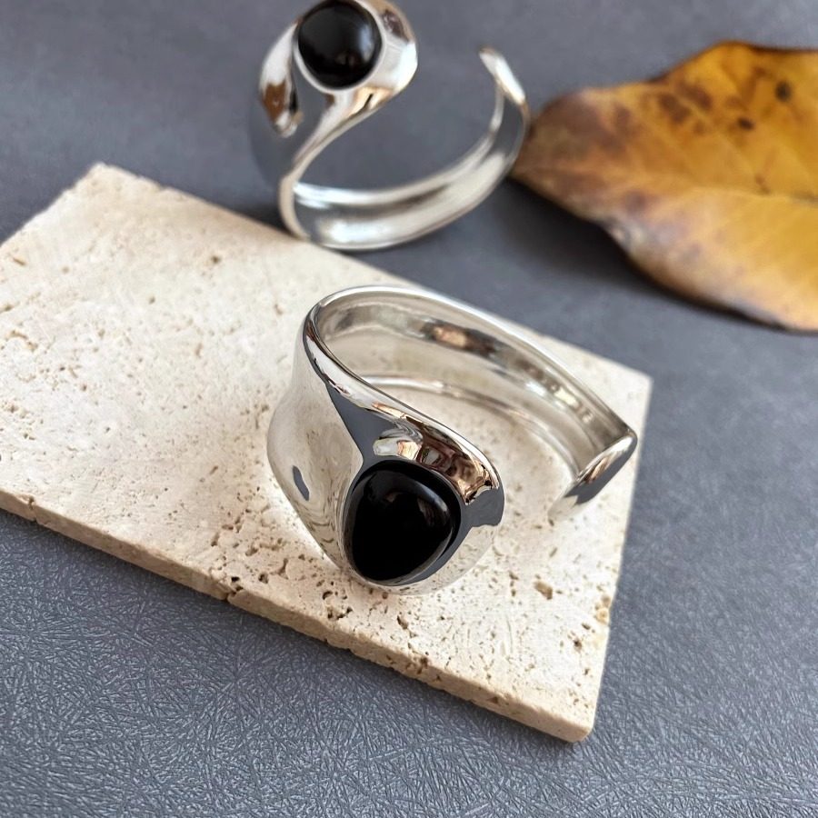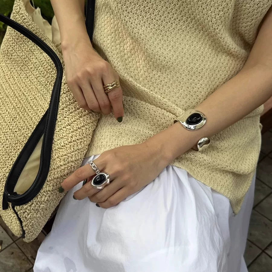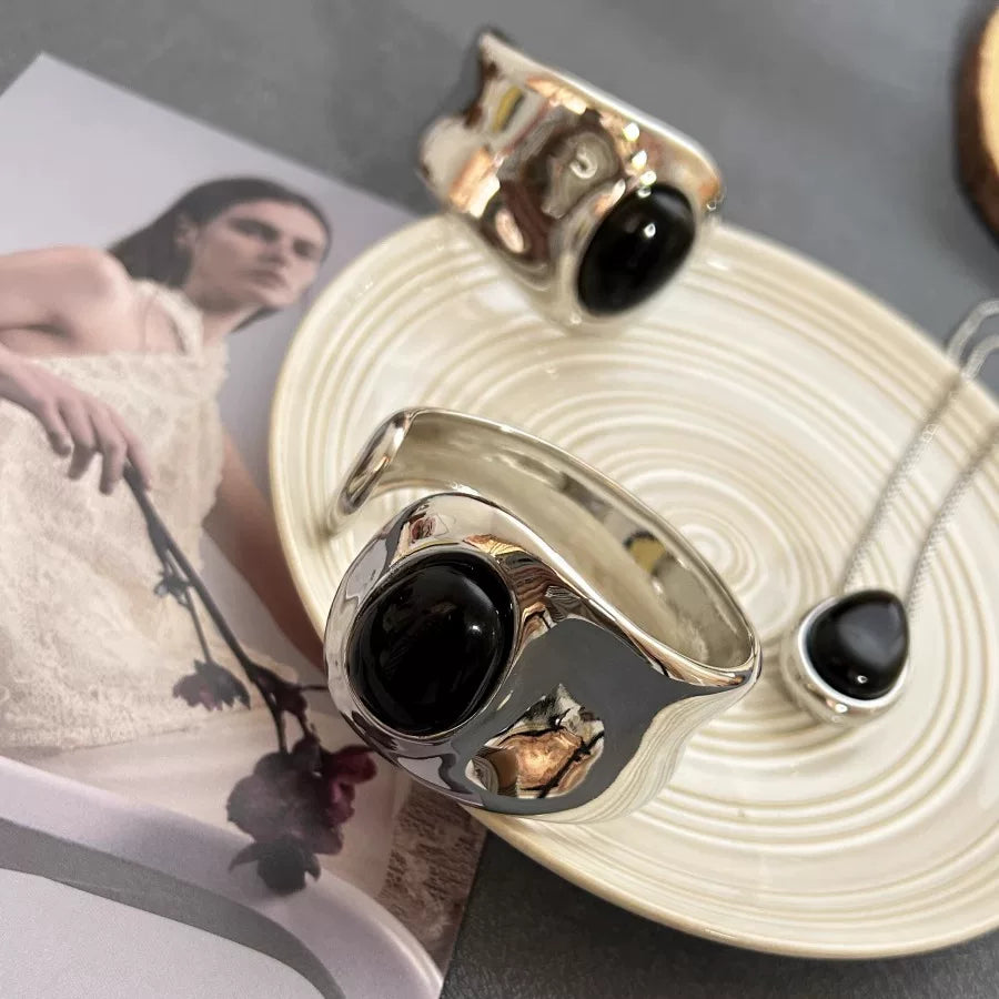 Niche Design Black Onyx Inlaid Bracelet New Chinese Style Metal Opening Adjustable Bracelet European And American Fashion Versatile Women