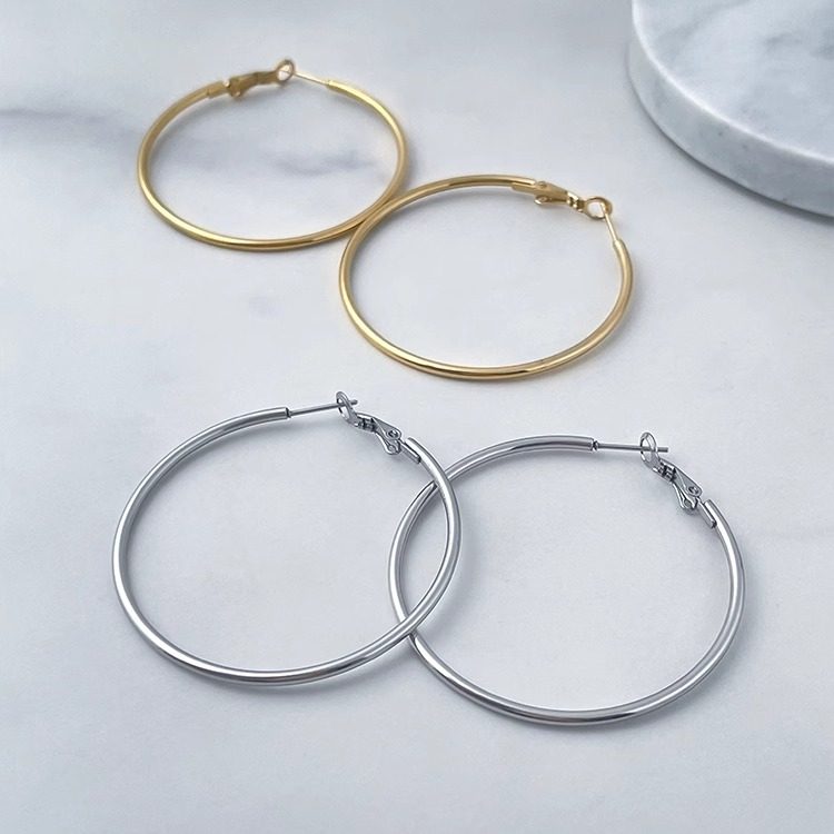 Yaoyizun European And American Large Hoop Unique Earrings That Don’T Pick Your Face Shape, Don’T Fade, Versatile Plain Hoops, Painless Ear Clips