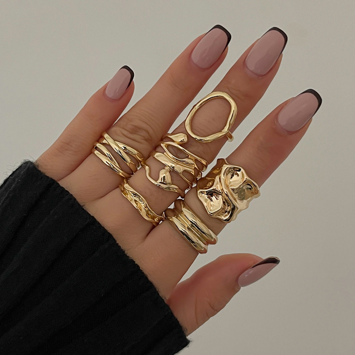 European And American Cross-Border Ins Style Liquid Metal Pleated Open Ring Women'S Design Irregular Lava Ring Rings