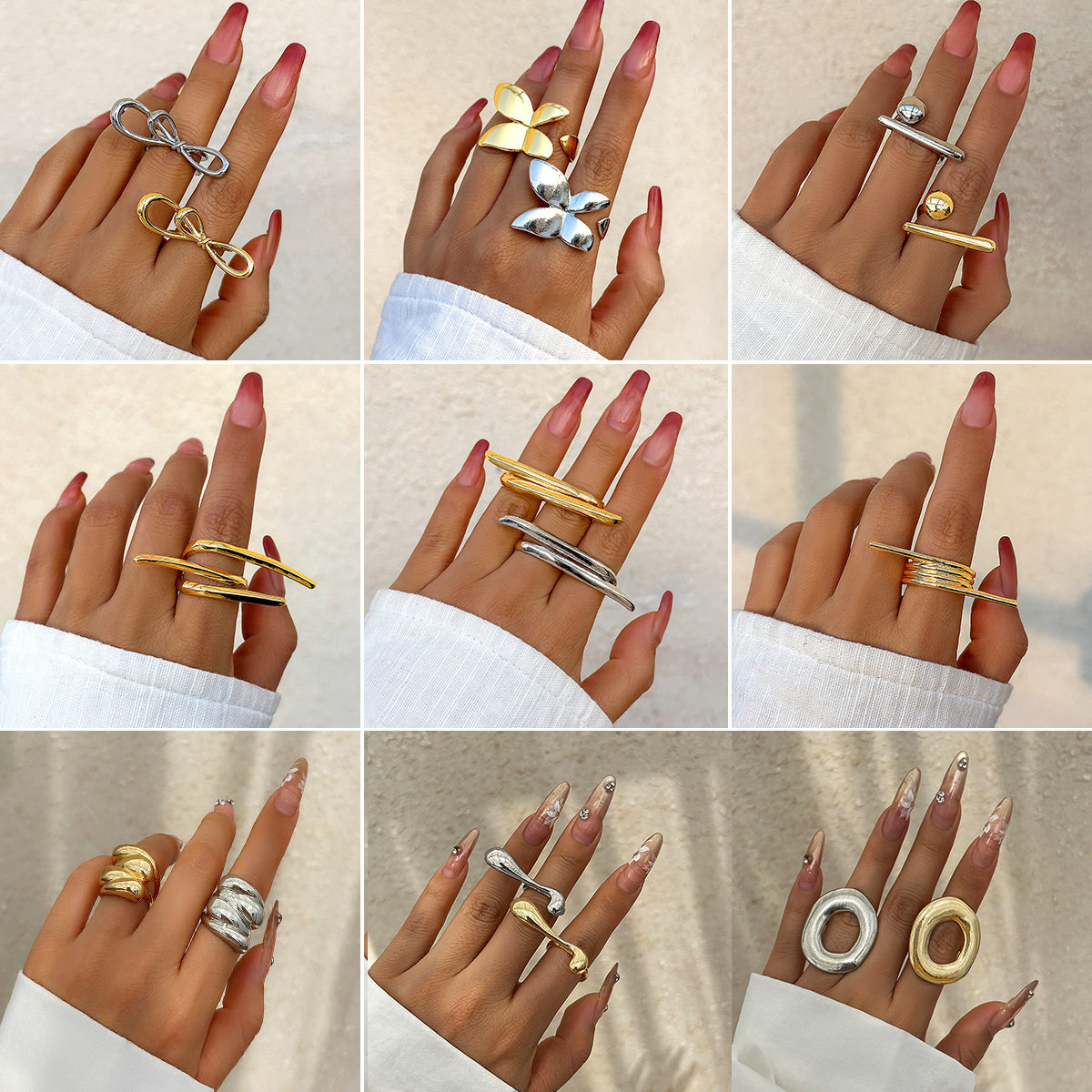 European And American Cross-Border Exaggerated French Metal Glossy Butterfly Ring Women'S Simple Bow Two-Finger Ring Ring