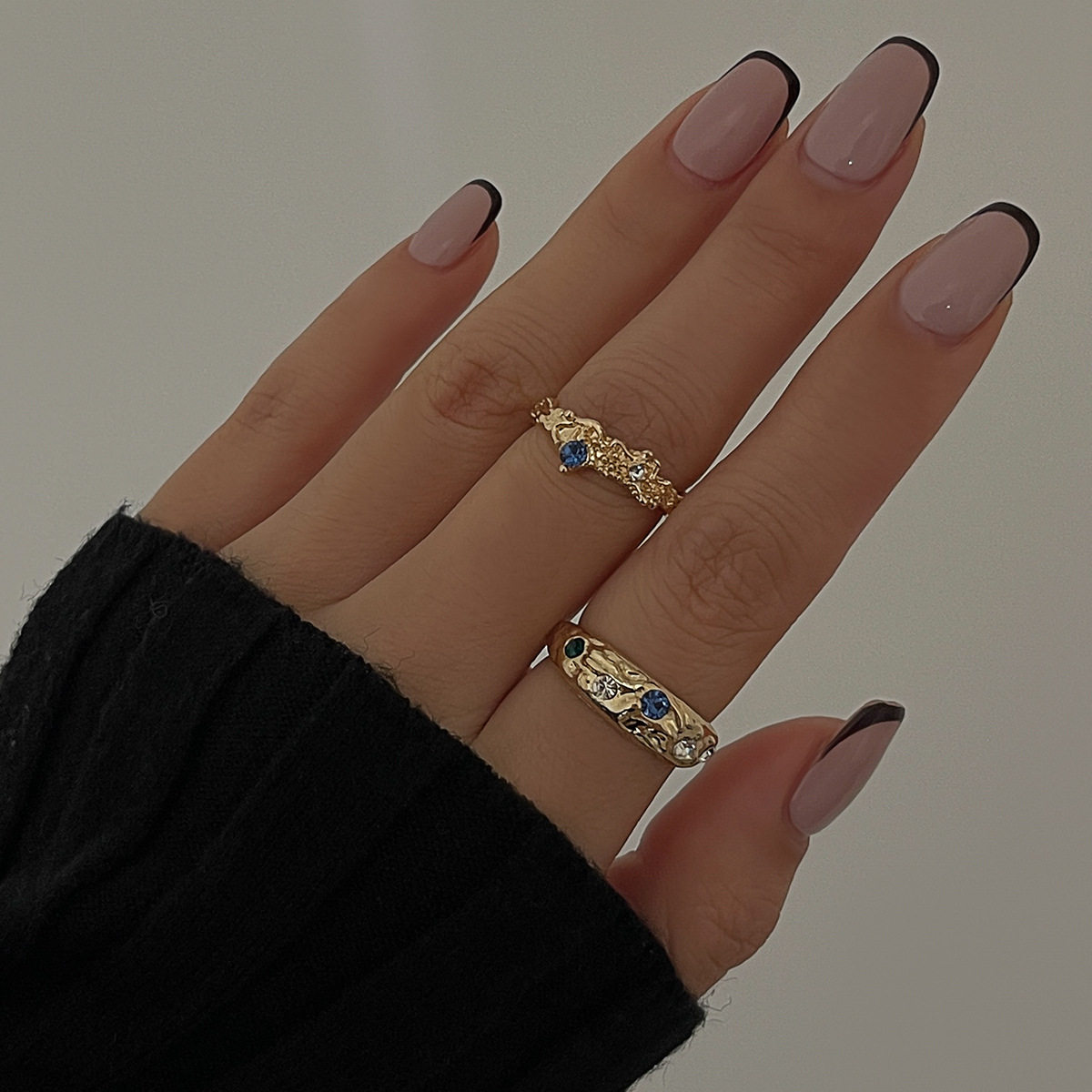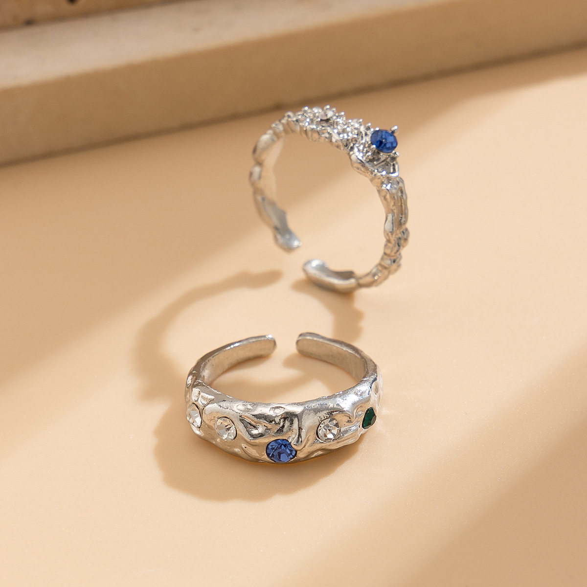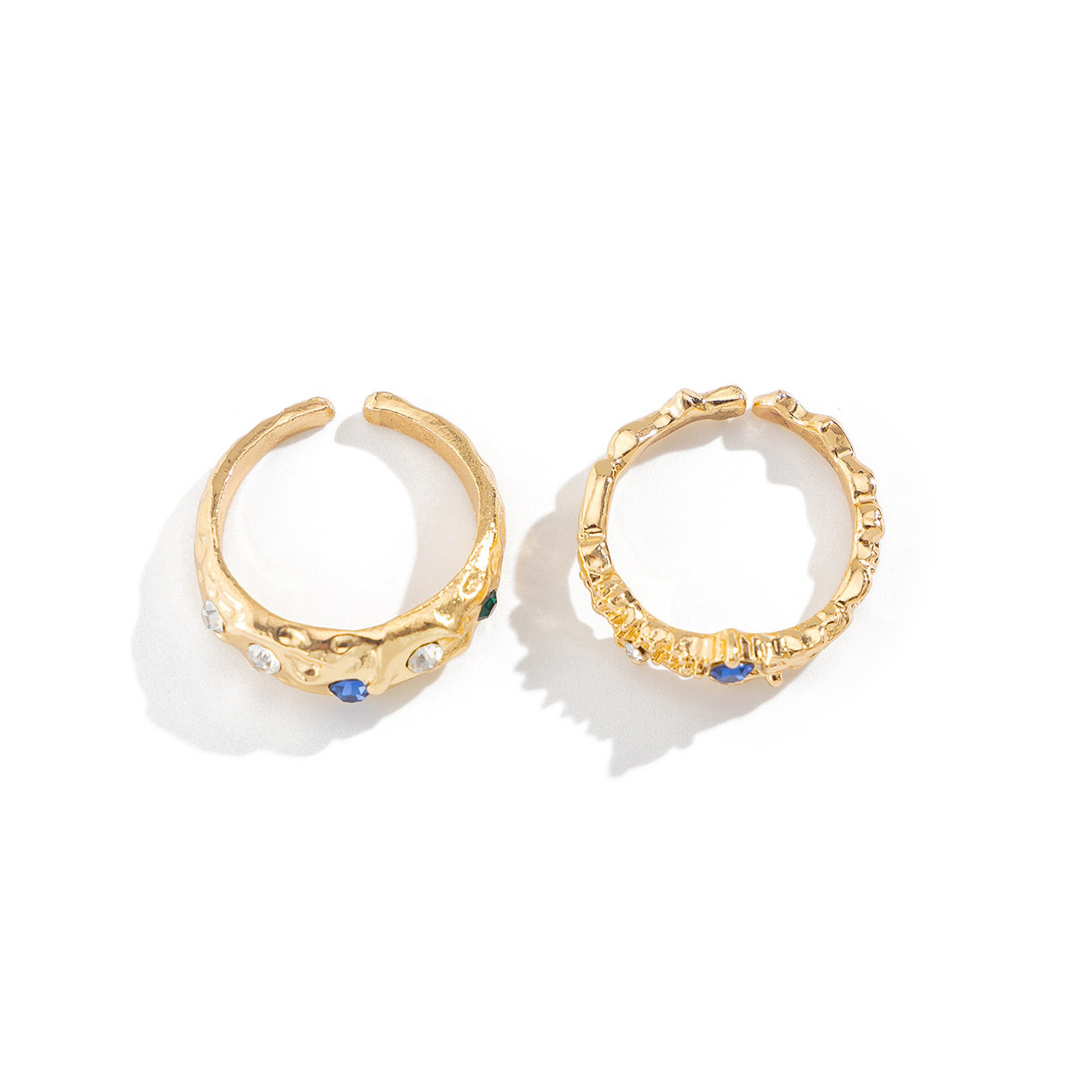 European And American Cross-Border Liquid Lava Metal Pleated Ring Set Ins Style Irregular Diamond Open Ring Bracelet