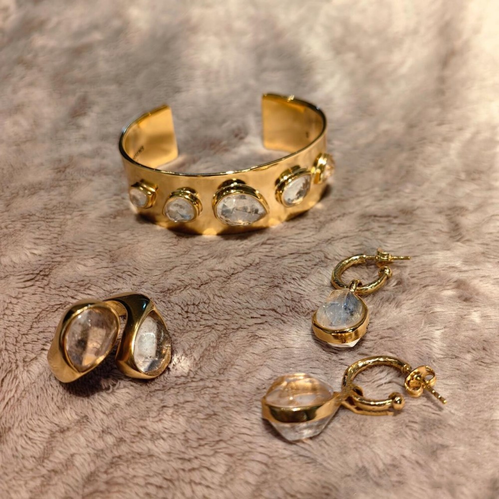 French Niche Design Water Drop Crystal Inlaid Wide Bracelet Simple Fashion European And American Fashion Gold Open 𫔭 Mouth Bracelet