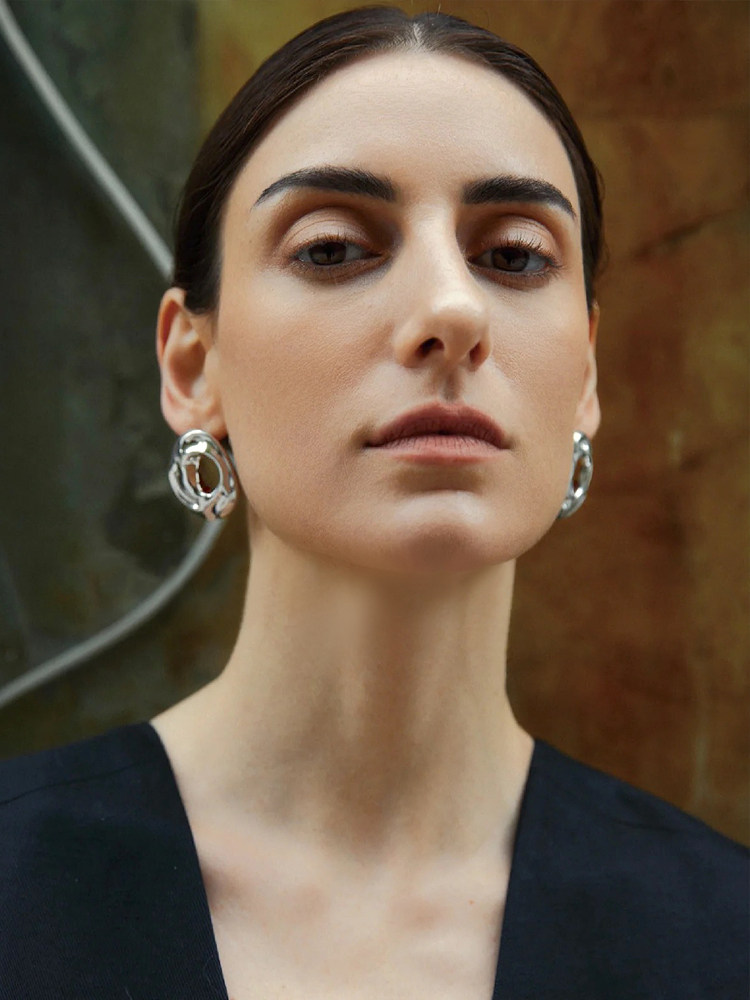High-Intelligence, Fashionable And Cool Style, Extremely Simple, Geometric And Irregular Shape, Metal Hollow Ring Stud Earrings