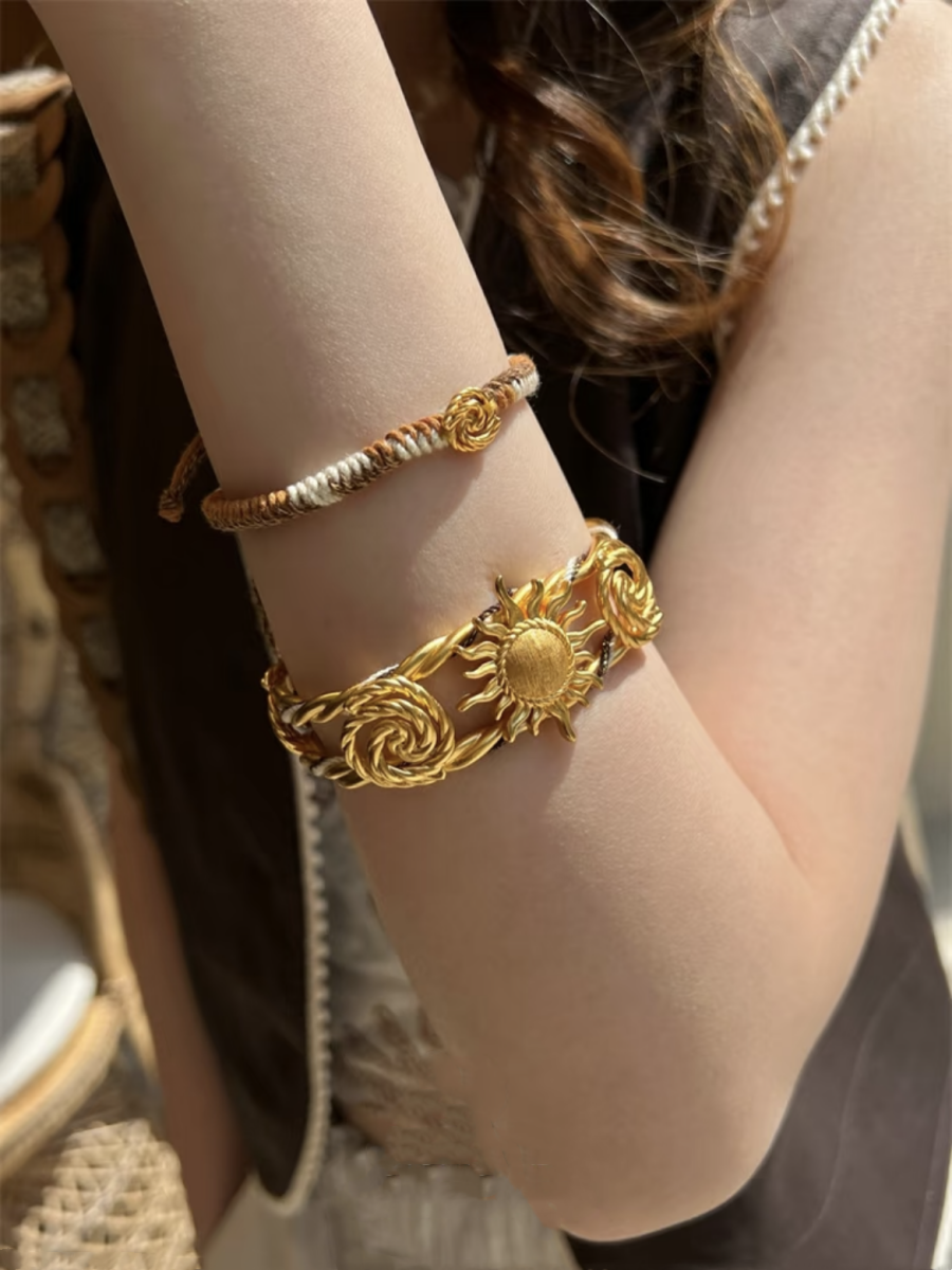 Niche Design, French Elegant Sun Knot Braided Bracelet, Adjustable Opening, Retro, Versatile, Adjustable And Stackable