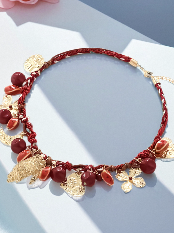 Bohemian Ethnic Style Hand-Woven Beaded Love Flower Moon Necklace Holiday Street Style Fashion Neck Necklace