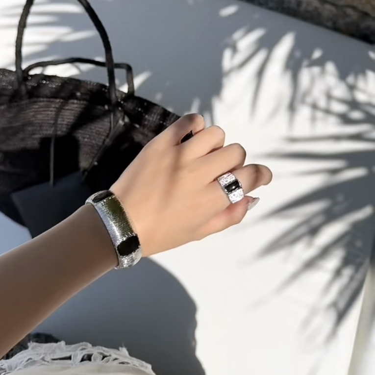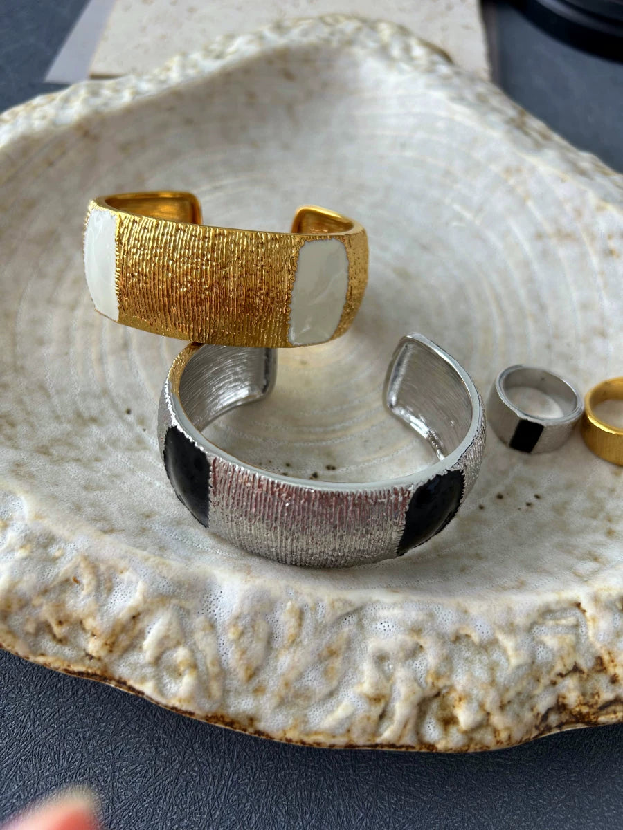 Niche Design European And American Fashion Gold Wide Version Bracelet Sparkling Opening Adjustable Color Matching Bracelet Accessible Luxury Women